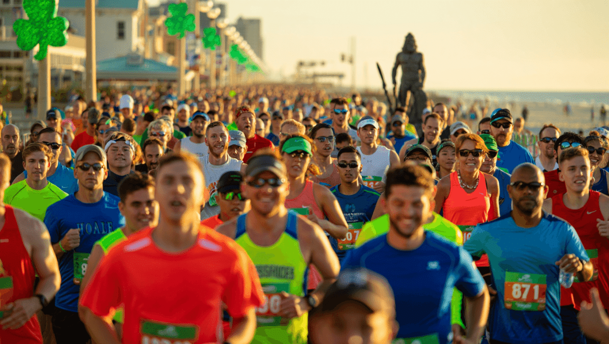 Founded in 1973 by Jerry and Lori Bocrie, the Shamrock Marathon has grown from humble beginnings into America’s premier St. Paddy’s Day running tradition. The race uniquely combines competitive excellence with festive celebration. Runners enjoy spectators and entertainment throughout the entire course, culminating in a finish line party on the oceanfront. The event isn’t just about fast times. It’s about community, tradition, and celebrating St. Patrick’s Day in motion.