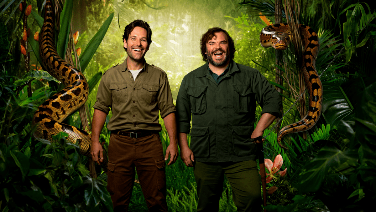 This isn’t a remake of the 1997 creature feature. Instead, Jack Black plays Doug, a wedding videographer, while Paul Rudd portrays Ronald Griff, a struggling background actor. The two childhood friends reunite with a wild dream, recreating Anaconda, their all-time favorite film from adolescence.